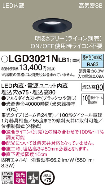 Panasonic ダウンライト LGD3021NLB1