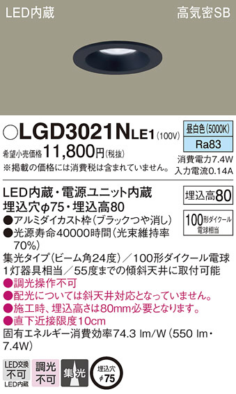 Panasonic ダウンライト LGD3021NLE1 | 商品情報 | LED照明器具・照明機器の激安通信販売・格安通販・業務用販売・見積もり販売 照明倉庫 -LIGHTING DEPOT-