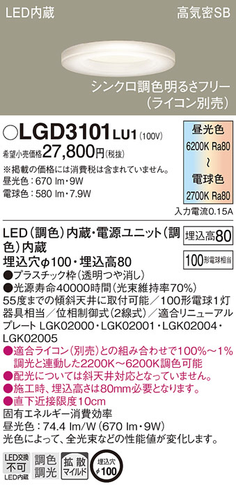 Panasonic ダウンライト LGD3101LU1