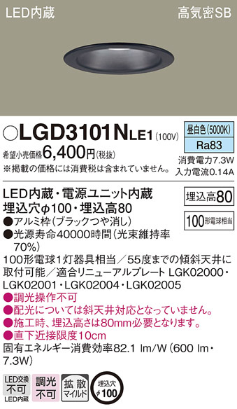 Panasonic ダウンライト LGD3101NLE1 | 商品情報 | LED照明器具・照明機器の激安通信販売・格安通販・業務用販売・見積もり販売 照明倉庫 -LIGHTING DEPOT-