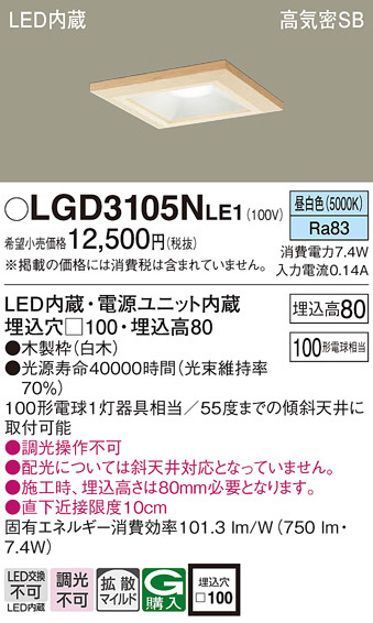 Panasonic ダウンライト LGD3105NLE1