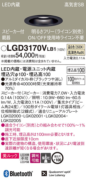 Panasonic ダウンライト LGD3170VLB1 | 商品情報 | LED照明器具・照明機器の激安通信販売・格安通販・業務用販売・見積もり販売 照明倉庫 -LIGHTING DEPOT-