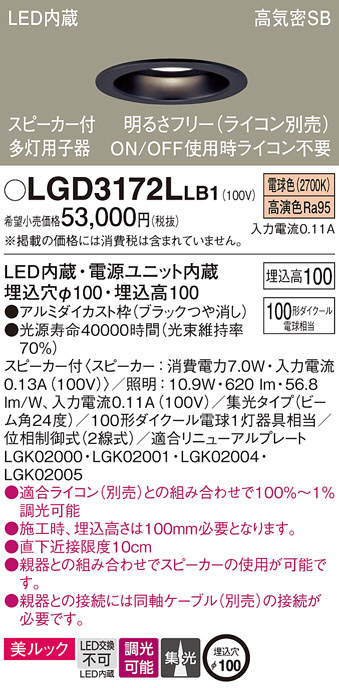 Panasonic ダウンライト LGD3172LLB1