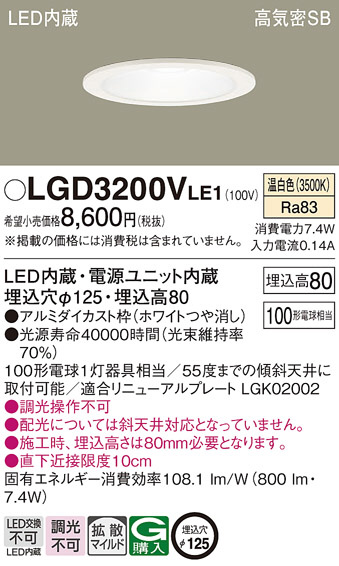 Panasonic ダウンライト LGD3200VLE1