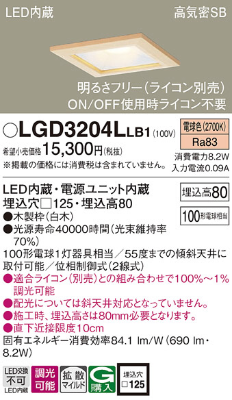 Panasonic ダウンライト LGD3204LLB1