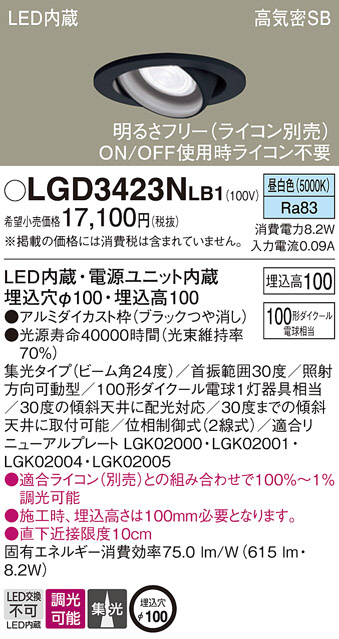 Panasonic ダウンライト LGD3423NLB1