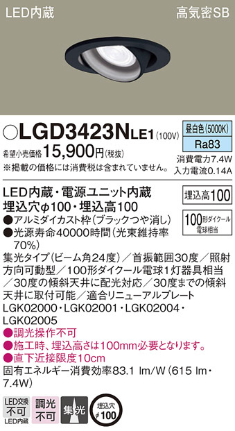 Panasonic ダウンライト LGD3423NLE1