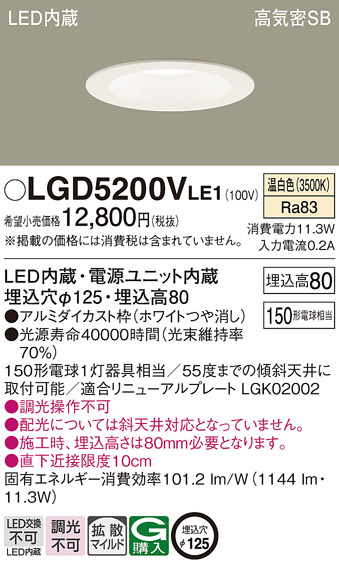 Panasonic ダウンライト LGD5200VLE1