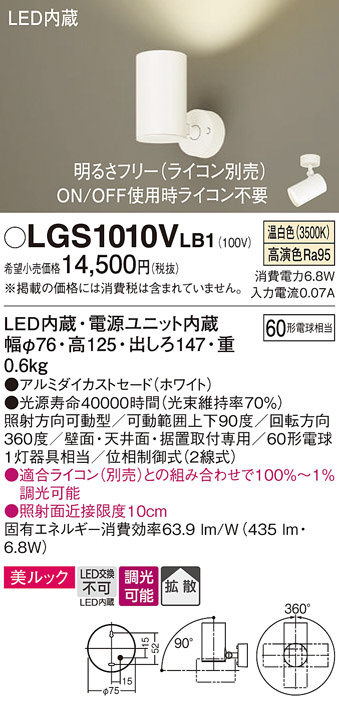 Panasonic スポットライト LGS1010VLB1