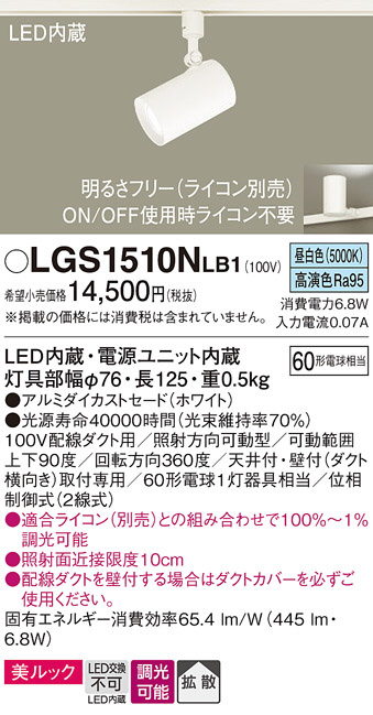Panasonic スポットライト LGS1510NLB1 | 商品情報 | LED照明器具・照明機器の激安通信販売・格安通販・業務用販売・見積もり販売 照明倉庫 -LIGHTING DEPOT-