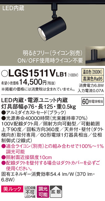 Panasonic スポットライト LGS1511VLB1 | 商品情報 | LED照明器具・照明機器の激安通信販売・格安通販・業務用販売・見積もり販売 照明倉庫 -LIGHTING DEPOT-