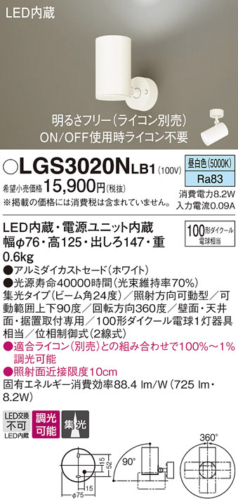 Panasonic スポットライト LGS3020NLB1