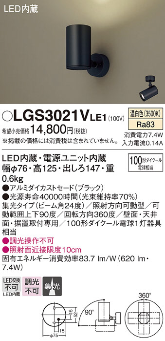 Panasonic スポットライト LGS3021VLE1