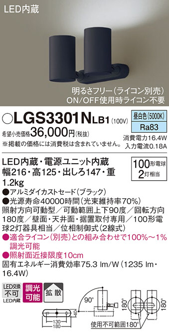 Panasonic スポットライト LGS3301NLB1 | 商品情報 | LED照明器具・照明機器の激安通信販売・格安通販・業務用販売・見積もり販売 照明倉庫 -LIGHTING DEPOT-