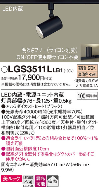 Panasonic スポットライト LGS3511LLB1 | 商品情報 | LED照明器具・照明機器の激安通信販売・格安通販・業務用販売・見積もり販売 照明倉庫 -LIGHTING DEPOT-
