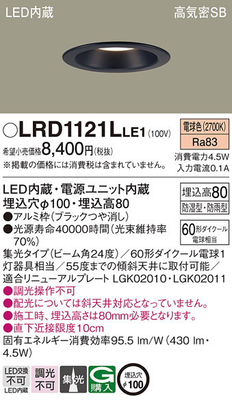 Panasonic エクステリアダウンライト LRD1121LLE1