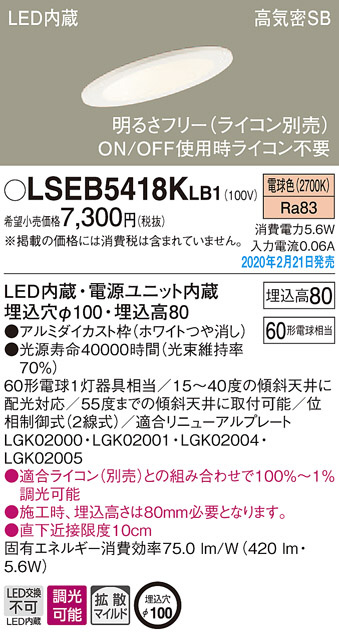 Panasonic ダウンライト LSEB5418KLB1