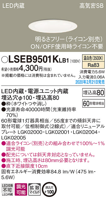 Panasonic ダウンライト LSEB9501KLB1