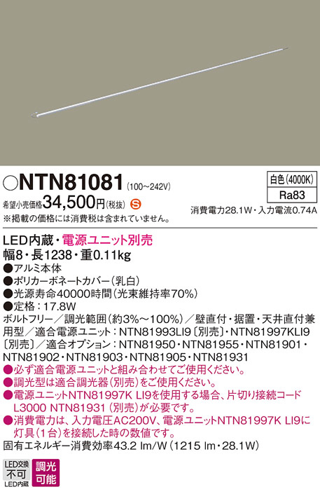 Panasonic 建築化照明器具 NTN81081 | 商品情報 | LED照明器具・照明機器の激安通信販売・格安通販・業務用販売・見積もり販売 照明倉庫 -LIGHTING DEPOT-