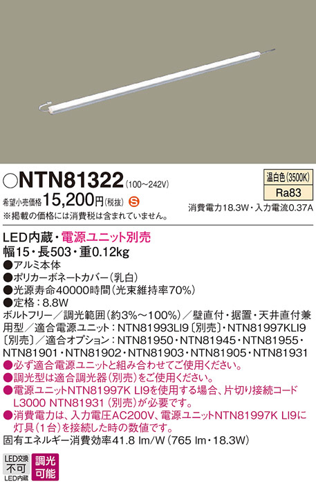 Panasonic 建築化照明器具 NTN81322 | 商品情報 | LED照明器具・照明機器の激安通信販売・格安通販・業務用販売・見積もり販売 照明倉庫 -LIGHTING DEPOT-