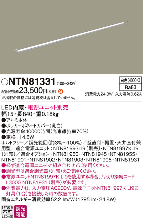 Panasonic 建築化照明器具 NTN81331 | 商品情報 | LED照明器具・照明機器の激安通信販売・格安通販・業務用販売・見積もり販売 照明倉庫 -LIGHTING DEPOT-