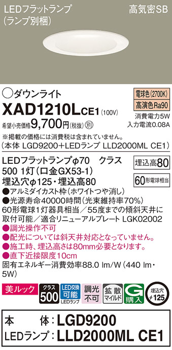 Panasonic ダウンライト XAD1210LCE1
