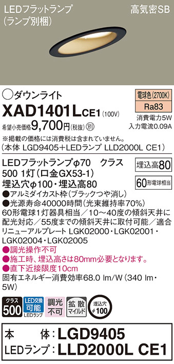 Panasonic ダウンライト XAD1401LCE1