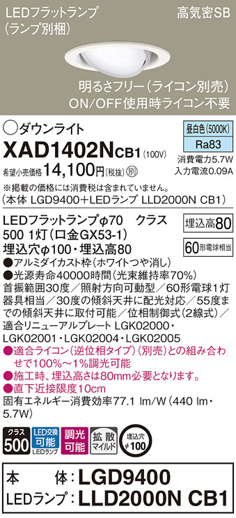 Panasonic ダウンライト XAD1402NCB1