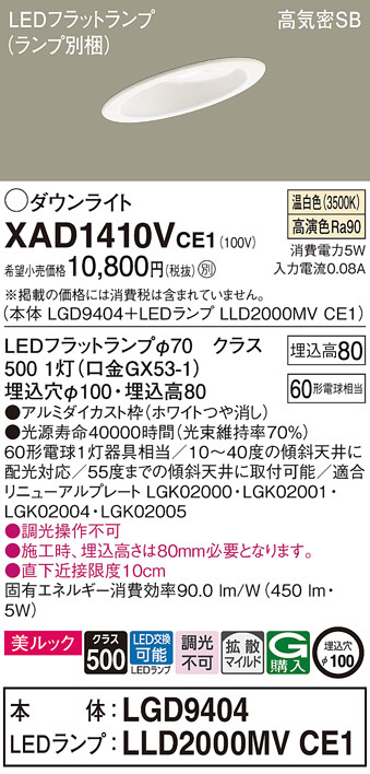 Panasonic ダウンライト XAD1410VCE1