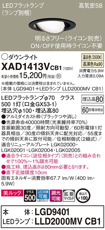 Panasonic ダウンライト XAD1413VCB1