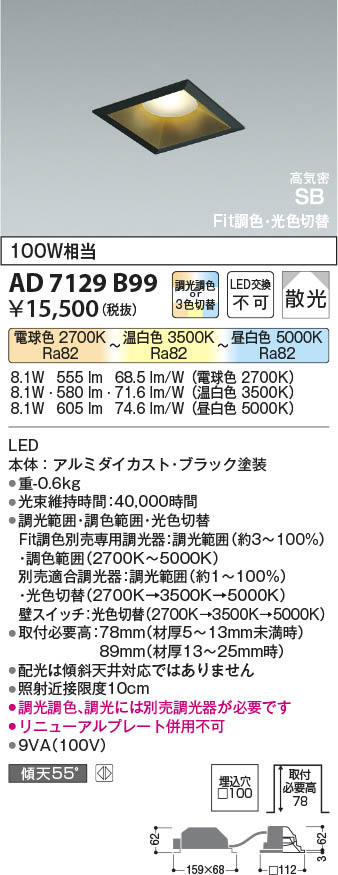 Koizumi コイズミ照明 LED高気密SBダウンライト AD7129B99