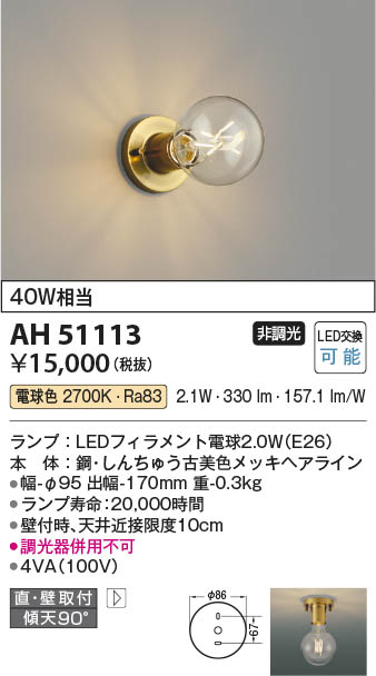 Koizumi コイズミ照明 LED小型シーリング AH51113 | 商品情報 | LED照明器具・照明機器の激安通信販売・格安通販・業務用販売・見積もり販売 照明倉庫 -LIGHTING DEPOT-