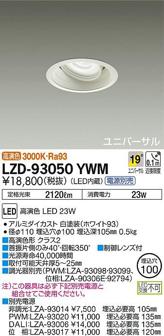 DAIKO 大光電機 ユニバーサルダウンライト LZD-93050YWM