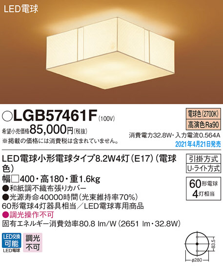 Panasonic シーリングライト LGB57461F