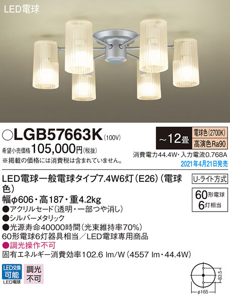 Panasonic シャンデリア LGB57663K
