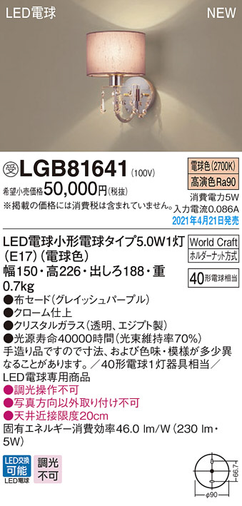 ■本体材質・仕上・色:布セード(グレイッシュパープル)・クローム仕上・クリスタルガラス(透明、エジプト製)