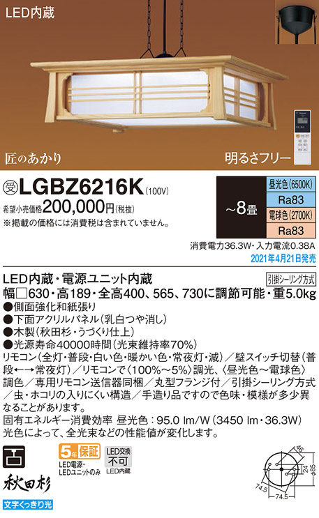 Panasonic ペンダント LGBZ6216K