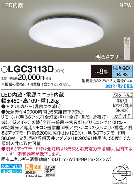 Panasonic シーリングライト LGC3113D