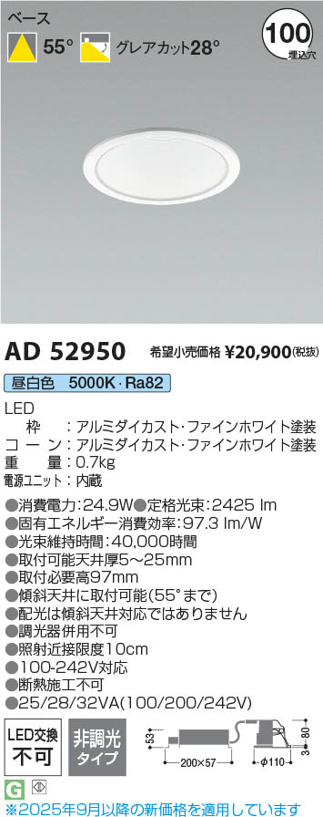Koizumi コイズミ照明 LEDダウンライト AD52950 | 商品情報 | LED照明器具・照明機器の激安通信販売・格安通販・業務用販売・見積もり販売 照明倉庫 -LIGHTING DEPOT-