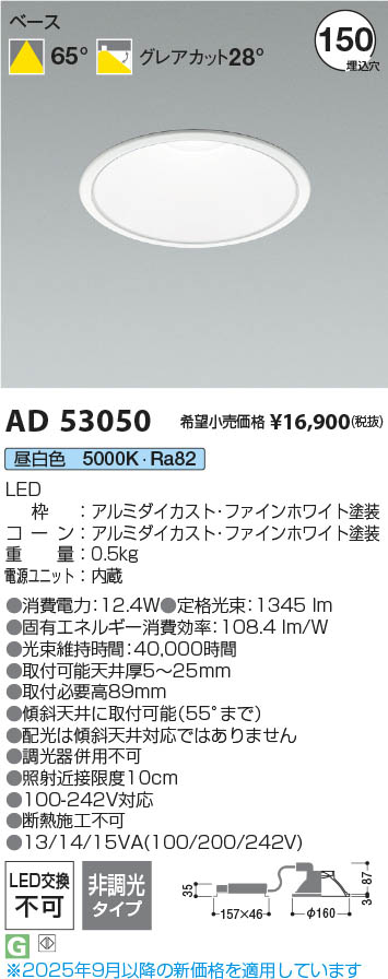Koizumi コイズミ照明 LEDダウンライト AD53050 | 商品情報 | LED照明器具・照明機器の激安通信販売・格安通販・業務用販売・見積もり販売 照明倉庫 -LIGHTING DEPOT-