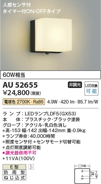 Koizumi コイズミ照明 LED防雨型ブラケット AU52655
