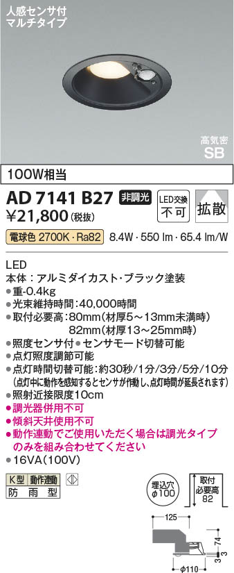 Koizumi コイズミ照明 LED高気密SBダウンライト AD7141B27 | 商品情報 | LED照明器具・照明機器の激安通信販売・格安通販・業務用販売・見積もり販売 照明倉庫 -LIGHTING DEPOT-