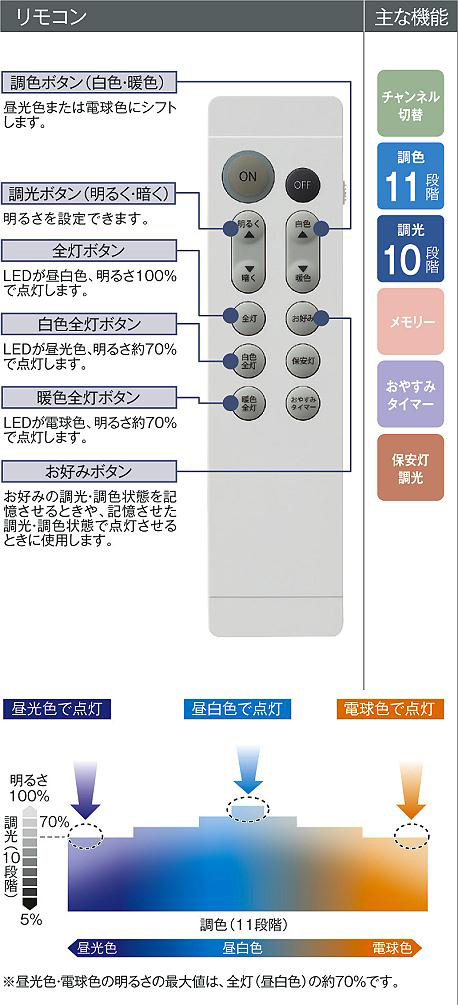 ■機能/他:●プルレススイッチ付(全灯-※メモリー-保安灯)※消灯前の調色調光状態