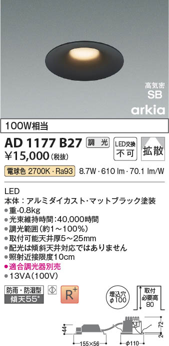 Koizumi コイズミ照明 LED高気密SBダウンライト AD1177B27