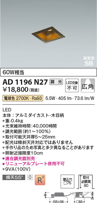 Koizumi コイズミ照明 LED高気密SBダウンライト AD1196N27