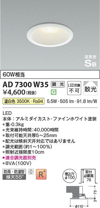 Koizumi コイズミ照明 高気密SBダウンライト AD7300W35