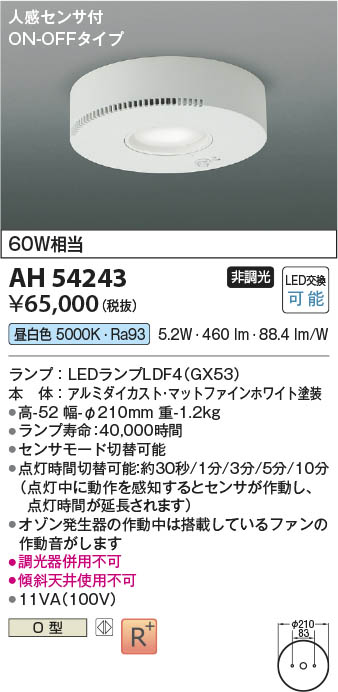 Koizumi コイズミ照明 LED小型シーリング AH54243 | 商品情報 | LED照明器具・照明機器の激安通信販売・格安通販・業務用販売・見積もり販売 照明倉庫 -LIGHTING DEPOT-