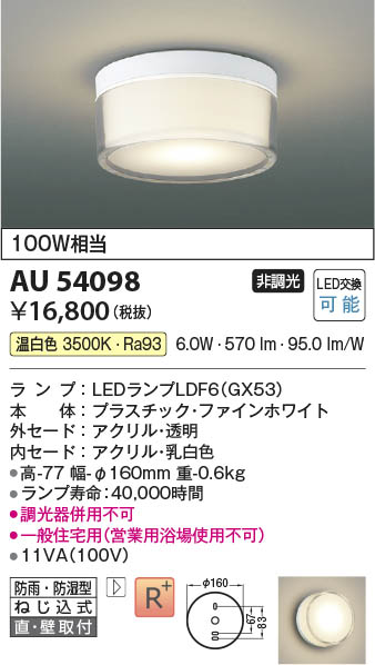 Koizumi コイズミ照明 LED防雨防湿型シーリング AU54098
