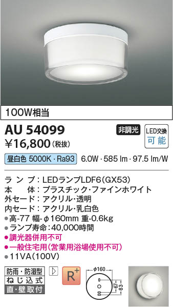Koizumi コイズミ照明 LED防雨防湿型シーリング AU54099
