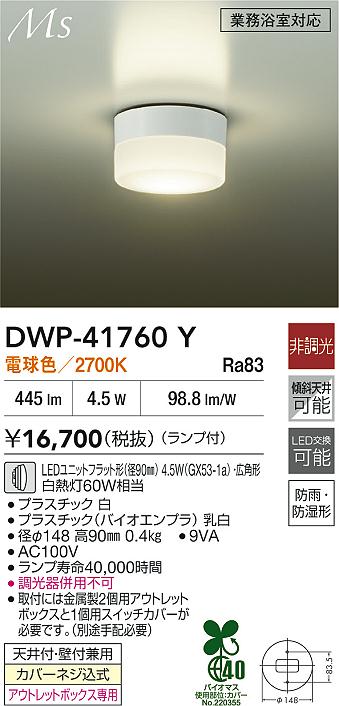 DAIKO 大光電機 浴室灯 DWP-41760Y